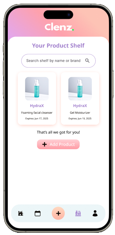 Add products to your shelf and manage your daily personal care routines.